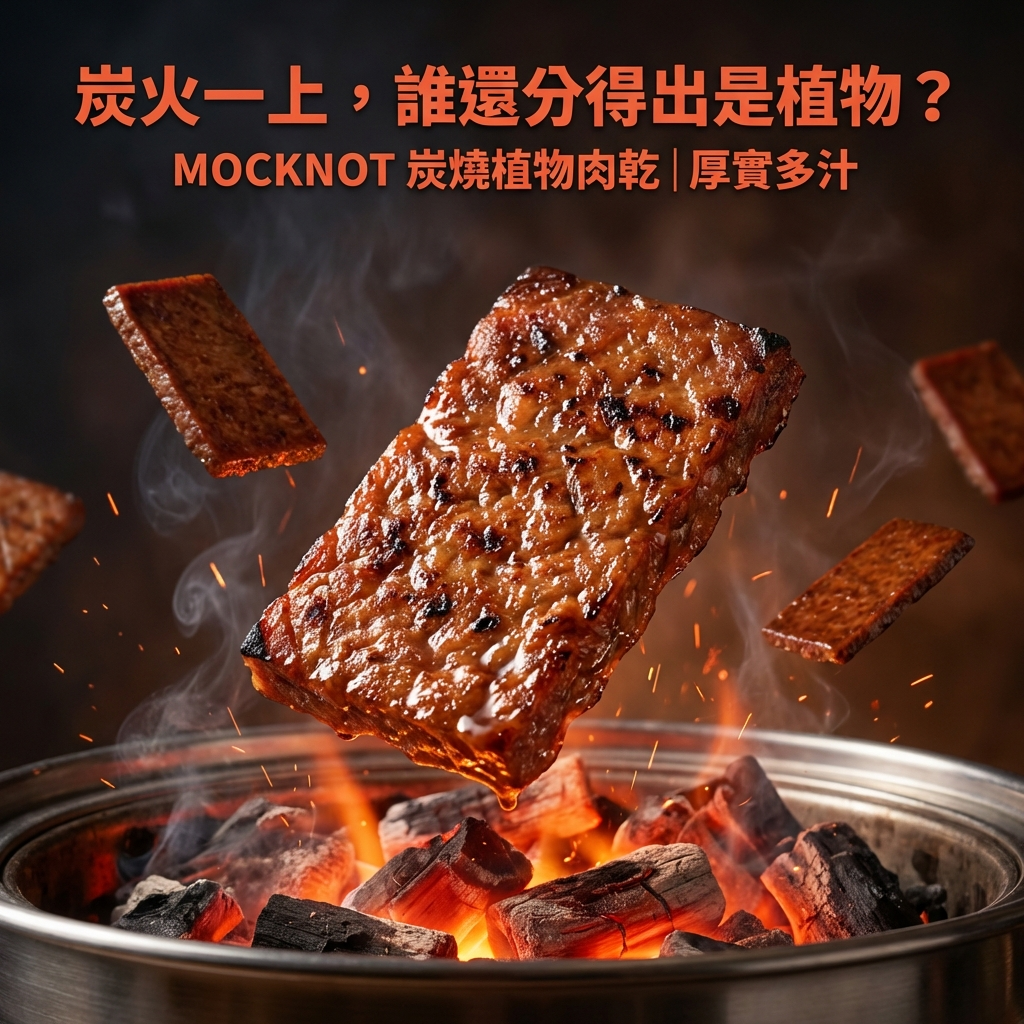 品名:【MOCKNOT 炭燒植物豬肉干(辣味)】(全素)
